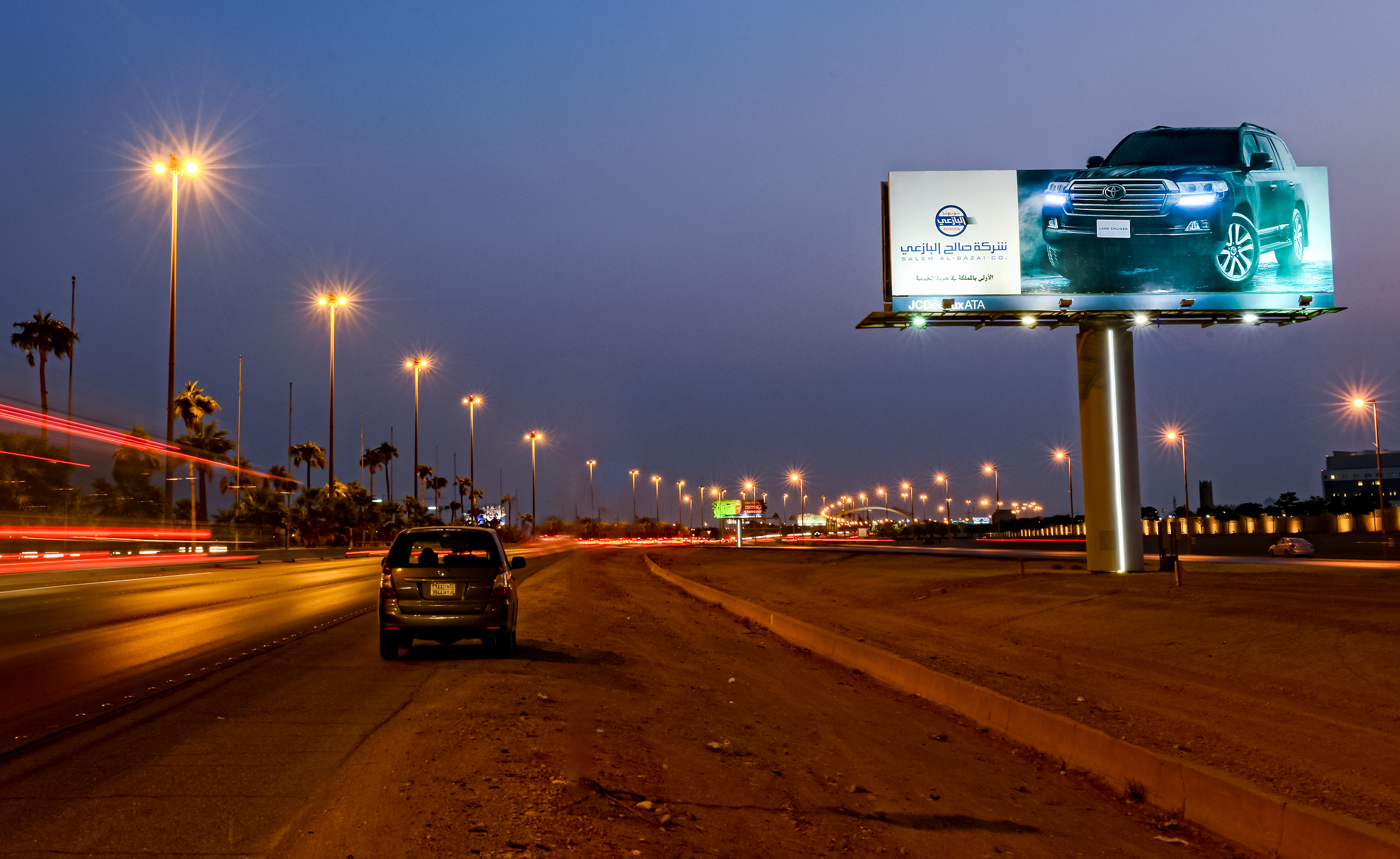 Development of a die-cut 1.56m (h) x 7m (w) to maximize on Saleh Al-Bazai's campaign. Installment of 2 LED lights simulating the headlights of the car.